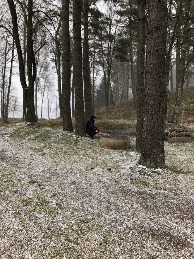 I går träffades vi några i familjen o skulle grilla lite korv. Det var verkligen ett typiskt april-väder igår. Ena stunden sol och fint väder, nästa stund snö/hagel och storm.