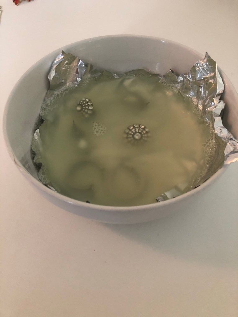 Forma aluminiumfolien som en skål och sänk ner i blandningen. Skålen ska fyllas med blandningen.
