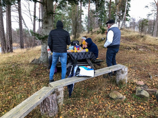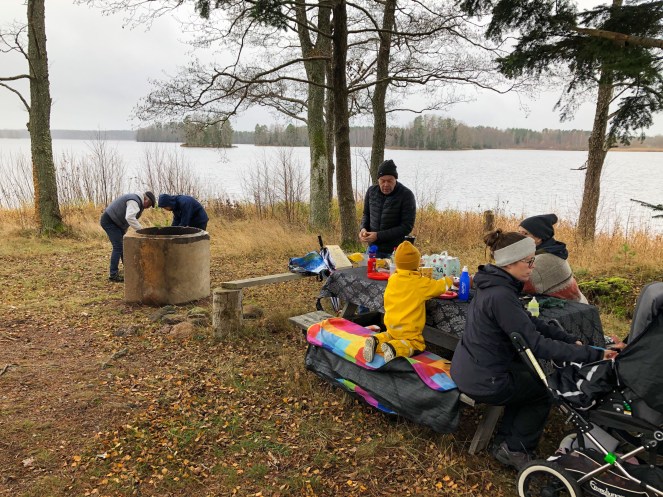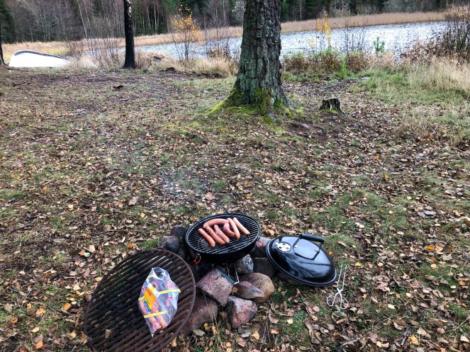 I lördags blev det lite farsdagfirande i förväg. Korvgrillning nere vid sjön! Lite kyligt och ruggigt men man ska ju helst inte träffas inomhus nu så det fick bli lite picknick istället.