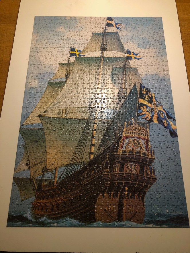 Vi pusslade även klart Wasaskeppet! Har inte pusslat på väääldigt länge. Den senaste tiden har det mest varit pussel tillsammans med barn och de är ju inte så svåra.