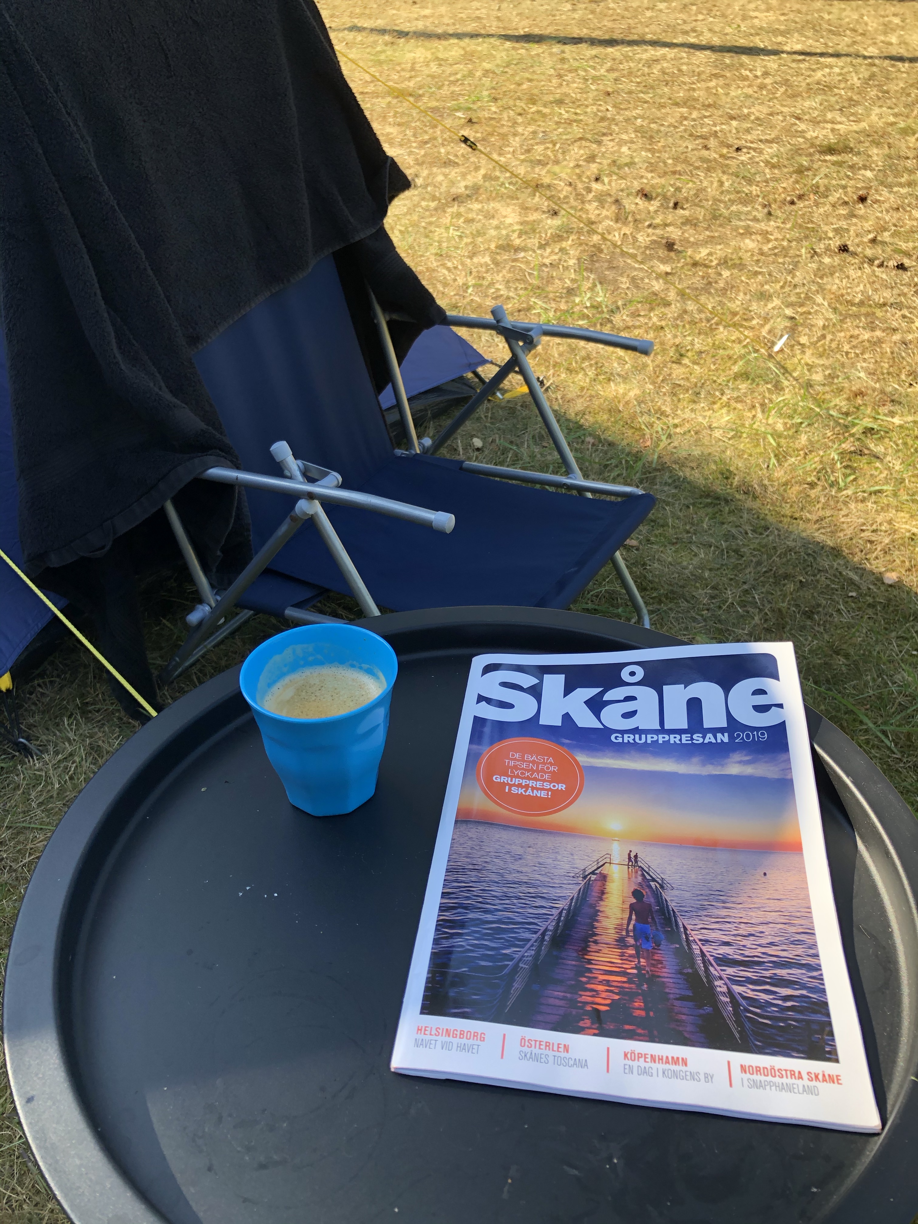 Nu dricker jag en morgonkaffe och kollar in en Skåne-tidning jag hittade i mitt skrivbord när jag rensade ut på jobbet.